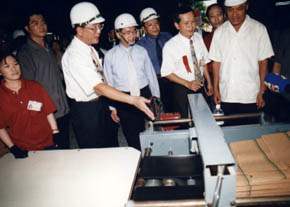 隨之,總統前往屏東縣萬巒鄉參訪屏東農產公司,林建滄董事長在簡報中指出,屏東農產公司成立於民國七十一年,主要產品為糯米粉、在來米粉、蓬萊米粉,以及米谷買賣,民國七十七年到八十六年間,陸續投資設立製袋工廠,生產牛皮紙袋,目前擴充經營德興油脂公司、德亨企業公司、德興養殖場、必立信企業公司、老六牧場、安佑企業公司等相關企業,從事農產、水產、畜牧等相關項目的經營。