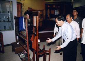 稍後,總統轉往屏東縣竹田鄉,除於六堆客家精神中心-忠義祠向客家先烈先賢上香致敬外,並欣賞客家八音樂團精彩演出的「正月牌」、「客家本色」等客家歌曲,並在該團榮獲全國第二屆總統盃客家歌唱大賽長青流行組優勝獎盃上簽名留念。之後,總統也在忠義祠管理委員會張松生主委的介紹下,參觀客家文物館,瞭解客家先民的奮鬥歷史。