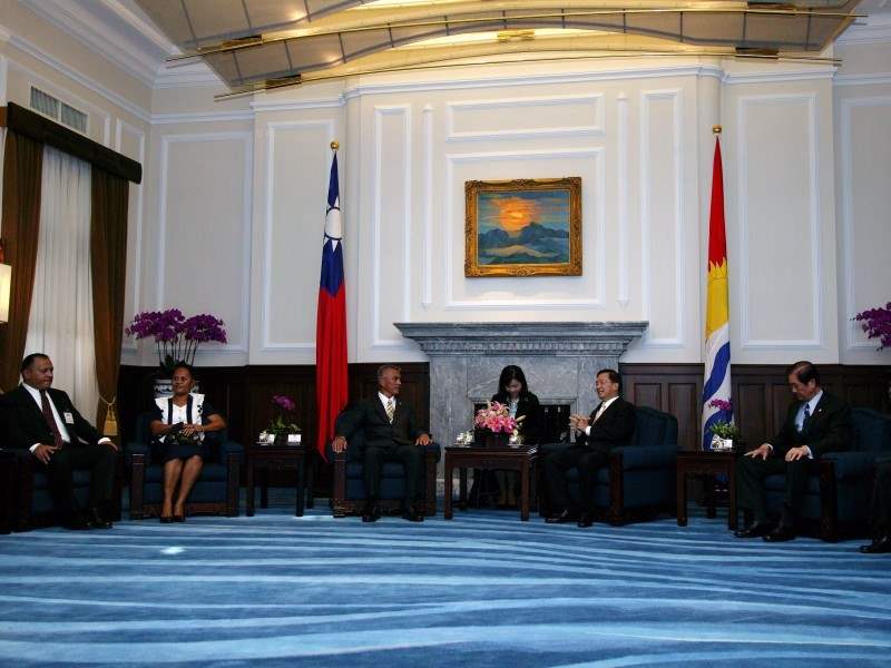 談到兩國間的合作,陳總統並表示,過去兩年多以來,我國政府及人民協助吉國包括農漁業等在內各項建設已有相當的成果,令人感到欣慰,不僅在首都,連同外島在內所推動的蔬果種植,都能受到吉國民眾的歡迎,特別是在他的關注下,去年能一起協助解決滯留諾魯的吉里巴斯與吐瓦魯磷礦工人等涉及三國的問題,這是中華民國政府最感榮幸之處,而這也是台灣與南太平洋國家合作非常成功的典範;陳總統另外重申,我國願意繼續提供獎學金,供吉國青年學子在南太大學及來台研習。