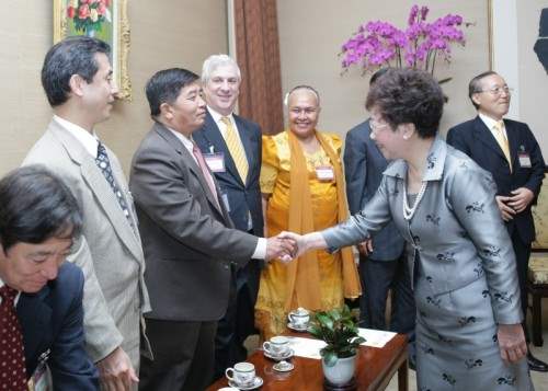 天宙和平聯合會「第三屆亞太島嶼國家高峰會議」與會外賓Takashi Aoyama(日本前眾議員)、Huh Moon Doh(南韓前國土統一院長官)、Mohamed Saleen(馬爾地夫國會議員)等一行30餘人,上午前來總統府晉見副總統。
