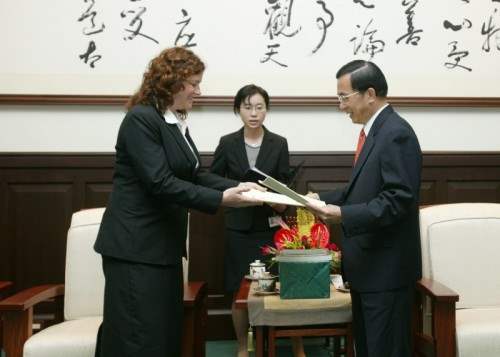 國際人權聯盟(FIDH)副主席Siobhan Ni Chulachain、廢除死刑推動聯盟副召集人吳志光教授、吳豪人教授、聯盟執行委員高涌誠律師、廖福特教授等,上午前來總統府晉見總統,總統府秘書長陳唐山也在座。
