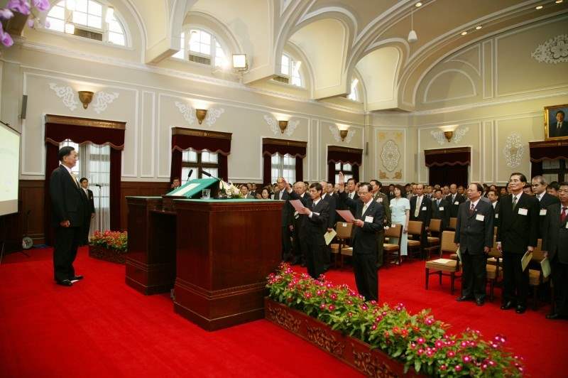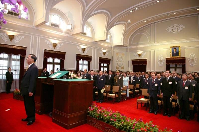 典禮於上午十時在總統府大禮堂舉行,總統由總統府秘書長陳唐山陪同抵達會場,中央政府首長均與會參加。
