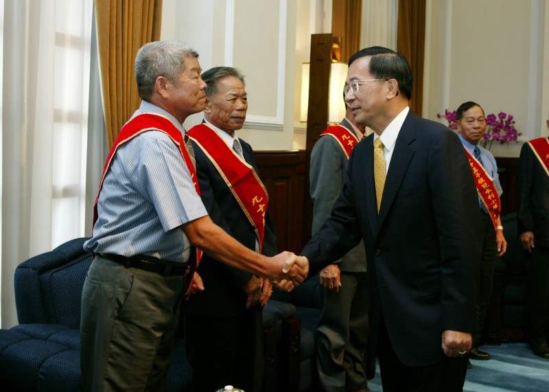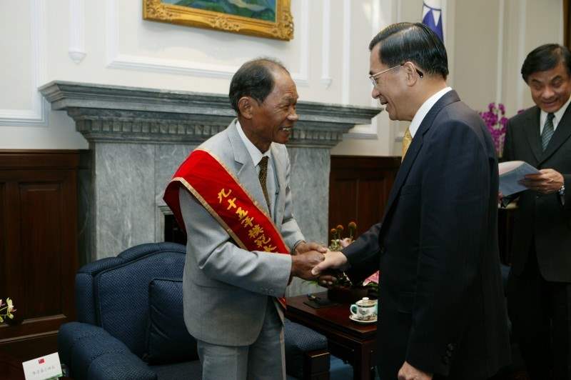 95年度全國農田水利會模範水利小組長代表包括:陳清盛、吳朝德、莊訓木、黃維政、余海、劉亮欽、黃文能、張江立、劉平、洪證欽、蔡正雄、吳柱、李壬癸、洪金成、王一衛、謝清江、陳繼弘、蘇進財、林本生、溫文龍、林振生、林金蓮,上午由農田水利會會長張輝元率領、行政院農業委員會主任委員蘇嘉全陪同,前來總統府晉見總統,總統府副秘書長卓榮泰也在座。