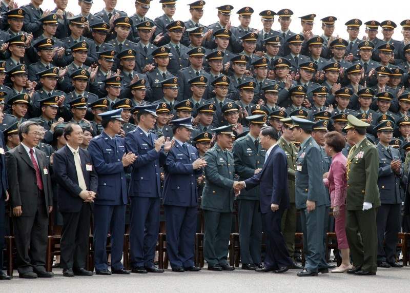 四年的軍校生活,各位所接受的教育和訓練,絕對不比一般的大學生要少。畢業以後,接著而來是更多的磨練與考驗。當其他的年輕朋友正在享受青春奔放的美好時光,各位選擇的卻是犧牲與奉獻,以最具體的行動表達了對自己的國家與同胞無私的大愛。在這裡阿扁不但要誠摯地恭喜大家順利完成學業,更要由衷地向所有畢業班的同學和家人們,致上最高的敬意、賀意以及感謝之意。