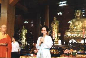 呂副總統秀蓮女士今天上午前往台南縣關廟鄉千佛山菩提寺,參加該寺九十一年度供佛及僧儀式,除上香禮佛外,並應邀致詞。