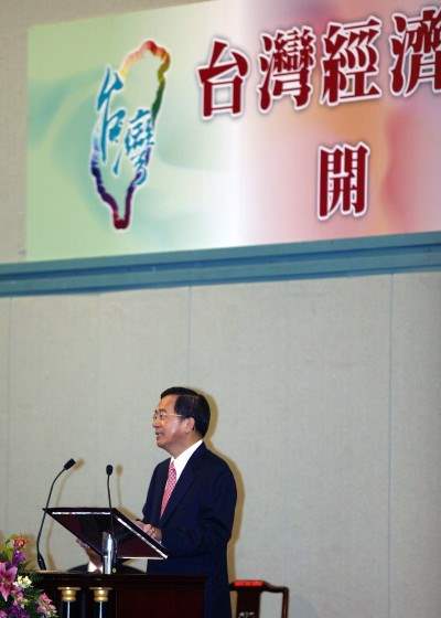 今天阿扁非常高興能夠應邀前來參加「台灣經濟永續發展會議」全體會議的開幕典禮,「經續會」的召開是於去年11月阿扁首先倡議,並於今年3月經行政院院會定案,從5月15日開始召開籌備會議,全面推動各項準備的工作,到今天前後長達8個月的時間,在此阿扁特別要向主辦單位行政院,以及所有促成這次「經續會」能順利召開的朋友及工作伙伴們,表示由衷的感謝與最高的敬意。同時也預祝今、明兩天的會議圓滿成功,透過大家的參與和討論,共同為台灣經濟的永續發展奉獻智慧與心力。
