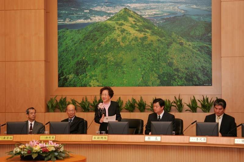 在聽取縣政發展簡報後,副總統致詞表示,簡報內容對於台北縣的發展及目前面臨的問題已有完整說明,她今天主要希望能和與會者交換前瞻性思維,期盼對台北縣的未來發展有所幫助。