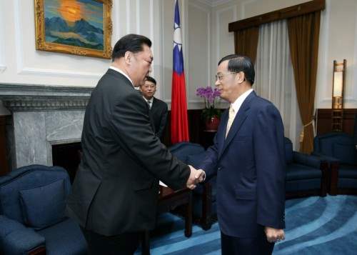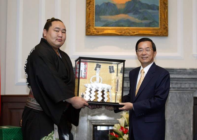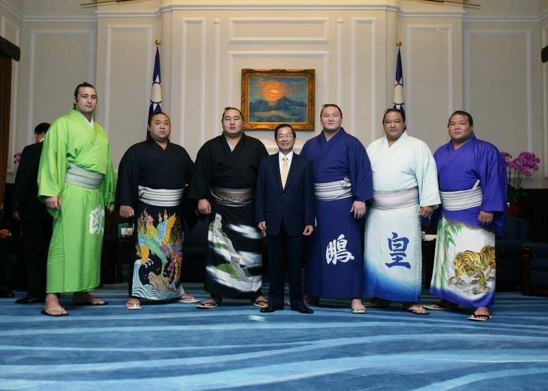由北乃湖理事長率領的日本相撲協會一行,包括理事大島(Ooshima)、監事不知火(Shiranui)、委員尾車(Oguruma)及贊助廠商代表小林慶彥(AT&C Japan Co., LTd取締役社長)及松井茂夫(日亞航代表取締役社長),及六位力士,包括橫綱朝青龍、大關白鵬、千代大海、魁皇、琴歐洲及栃東,上午由新聞局局長鄭文燦陪同,前來總統府晉見總統,總統府副秘書長劉世芳也在座。