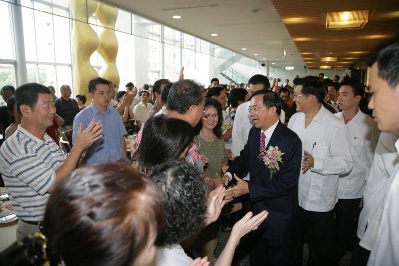 今天大會可說非常有面子,也是陳理事長卓越的帶領才有如此的面子,兩位前後任行政院院長都來到現場祝賀,這是台南鄉親最大的光采,請大家以最熱烈的掌聲來感謝蘇院長及謝前院長。謝前院長將擔負起更大的責任,參選台北市市長。在此我們要飲水思源,其實12年前謝前院長就有機會當台北市市長,但是他將這機會讓給我,之後他到高雄市尋求發展。因此他有這個心,來替台北市民服務,大家在台北可以做最好的後盾。謝前院長擔任高雄市長短短2任不到時間,讓高雄市的建設有如此大的成長與進步,可說是脫胎換骨,是所有高雄人都感受得到。過去7、8年,高雄市的進步大家有目共睹,相較台北市,相信高雄市進步相當多。台北市可說在過去幾年當中,很多建設停頓,因此我們希望有一個新的好市長─謝長廷來協助推動,他不只能將過去建設高雄的良好經驗與成就帶來台北,一方面阿扁可以保證他可以比阿扁過去擔任台北市長4年時做得更好,阿扁在此拜託大家給予謝前院長關心與支持。其實,謝前院長8年800億治水預算,在他任內推動,相當不簡單。過去治水預算1年10億,如果要達到800億必需花費80年,但是治水一天也不能拖延,所以要提前完成,這就是一位很有眼光的政治家。這筆預算能得到國會最後的支持,我們也相當感謝,因為,8年800億治水預算中,台南縣故鄉也是受益很多,所以阿扁在此特別提起。