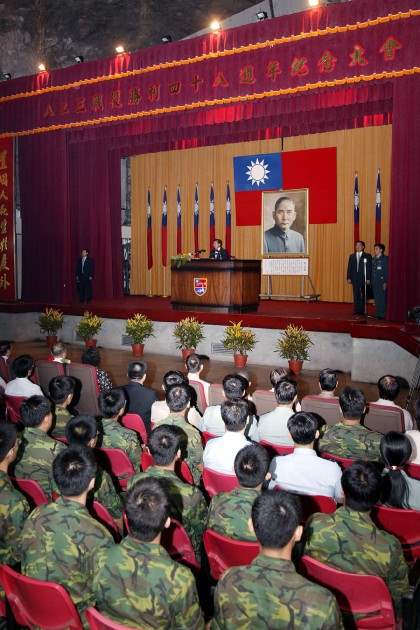 「八二三砲戰」至今已屆滿48週年,這場戰役的勝利不但奠定了台灣日後得以生存與發展的基礎,更是台海能維持長達半個世紀的和平最重要的關鍵所在。今天我們在此舉行「八二三砲戰勝利紀念大會」,除了緬懷先賢與先烈們為保國衛民所作的犧牲與奉獻外,更要記取過往歷史的教訓,和平絕不能建築在敵人的善意之上,苟且偷安最後的結果就是滅亡。唯有憑藉著堅實的國防武力,使敵人不敢越雷池一步,這才是實現永久和平唯一的選擇與屏障。