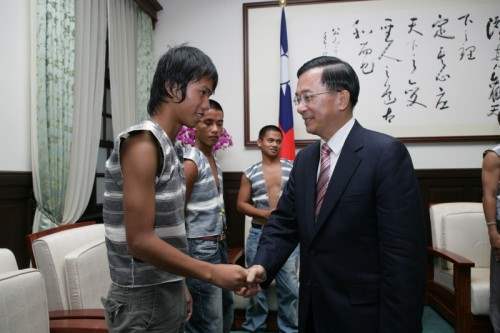 陳總統水扁先生今天下午接見蘭嶼青年寶島人文生態體驗學員及學生工作隊,除肯定生態體驗營的舉辦具深遠意義之外,也對參與協辦的行政院青輔會表達歡迎及感謝之忱。
