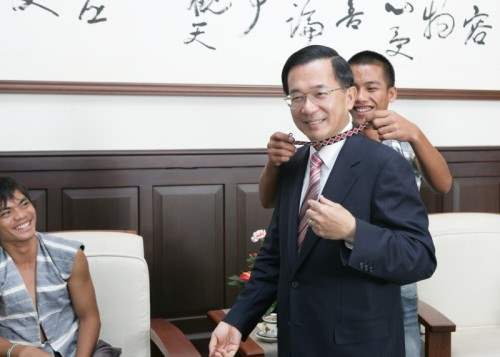 蘭嶼青年寶島人文生態體驗學員及學生工作隊,由台灣環境保護聯盟會長陳椒華率領,下午由行政院青輔會主委鄭麗君陪同,前來總統府晉見總統,總統府副秘書長卓榮泰也在座。