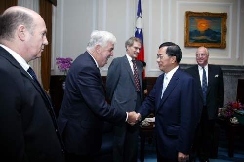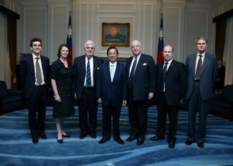 台英國會小組共同主席溫特頓下議員偕上議院柯爾科路尼勳(The Lord Kilclooney)議員伉儷、下議院大衛森(Mr. Ian Davidson)議員,下午由外交部次長侯清山陪同,前來總統府晉見總統。
