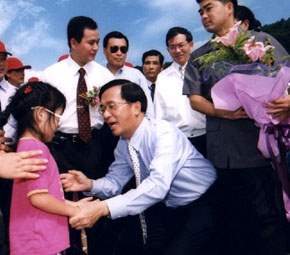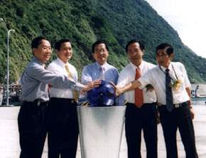 陳總統水扁先生今天上午在傳統竹筒禮炮、元極迎賓舞和地方鄉親的熱烈歡迎下,抵達宜蘭縣南澳朝陽漁港參加漁港的啟用典禮,並和宜蘭縣劉守成縣長等人一起按鈕啟用,和大家共同見證地方建設的成果。