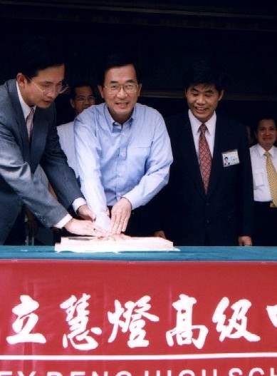 下午,總統則前往員山鄉參訪慧燈完全中學,除聽取校長的簡報外,也應邀印製手印並參觀校區設施,留印之後總統表示,慧燈中學是由十九位對教育熱心人士,即所謂的「快樂的瓜」,每人出資三千五百萬元所集資建立的,他們對教育的熱忱令人感佩。總統也說,日本的教育家吉田茂先生曾說,他一生不做大臣,但最大的驕傲就是培養了一百多位大臣,而在台灣的教育家朱昭陽先生也說,他不想做官,只希望為國家培養最好的人才,這兩位偉大的教育家,他們的理念也是慧燈中學的願景,相信慧燈中學一定可以培養出優秀的人力為國家奉獻心力。對於學校林董事長在簡報中提及目前的私立學校法有所不宜之處,總統也希望教育部相關同仁能夠深入研議處理。