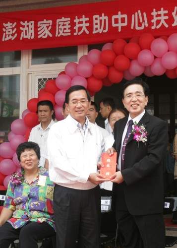 今天我們非常高興能夠來澎湖參加「扶幼館」落成啟用典禮以及「彩虹屋」的揭牌儀式。澎湖家庭扶助中心40年前設立以來,提供澎湖地區遭遇急難變故、生活貧困兒童與其家庭經濟、教育、醫療、育樂和心理上的輔導,成效非凡,獲致全國社會各界一致的讚揚與肯定。在此本人要代表全國同胞對我們澎湖家扶中心的所有工作同仁們致上最高的敬意。