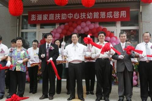 致詞後,總統並為澎湖家扶中心的開幕剪綵,也參觀家扶中心的設施。