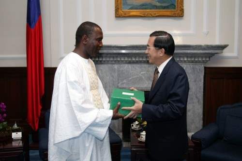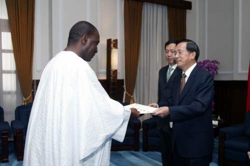 甘比亞共和國新任駐台特命全權大使朱瓦拉(Mawdo Corajiki Juwara)今天向陳總統水扁先生呈遞到任國書。