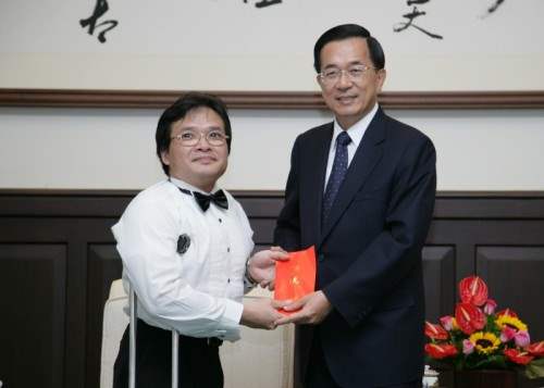 參加第4屆世界合唱大賽廣青合唱團團員,由團長李偉陽率領,前來總統府接受總統道賀,總統府副秘書長卓榮泰也在座。