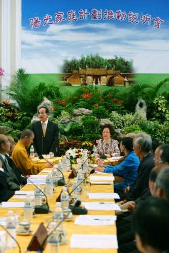 副總統並推崇王院長不僅是國會領導人,而且深入民間宗教團體,非常瞭解民間疾苦。她之前剛好在某個佛教法會與立法院王院長同台,當下即邀請王院長共同來推動「陽光家庭」計畫,而王院長也欣然答應。