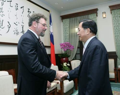 德國國會議員弗魯格上午由德國駐台代表薄達夫(Detlef Boldt)及外交部次長楊子葆陪同,前來總統府晉見總統,總統府副秘書長劉世芳也在座。