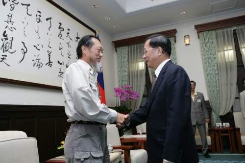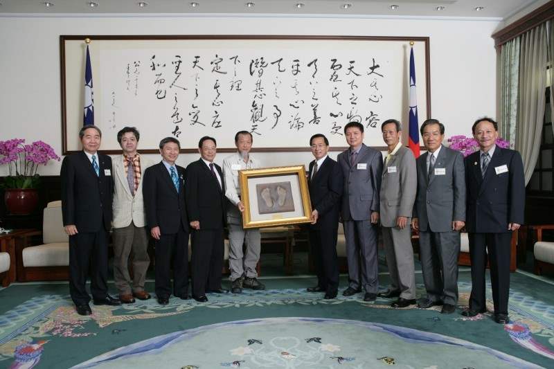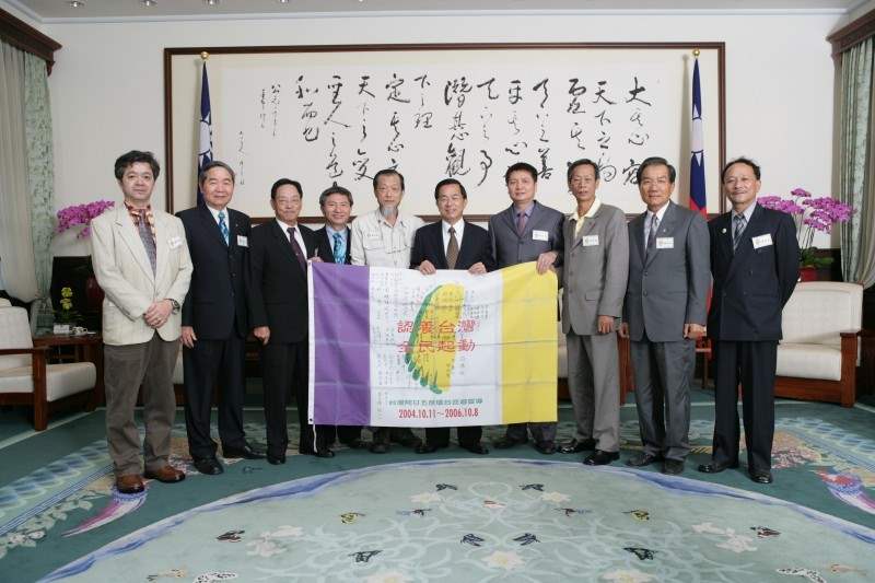 「認養台灣 全民起動」活動發起人林明德暨後勤支援總部顧問團成員,下午前來總統府晉見總統,總統府副秘書長卓榮泰也在座。