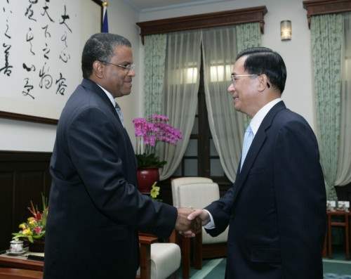 陳總統水扁先生今天下午接見貝里斯外交暨外貿部長柯特尼(Eamon Courtenay)伉儷,代表政府及2,300萬人民,表達由衷的歡迎之意。