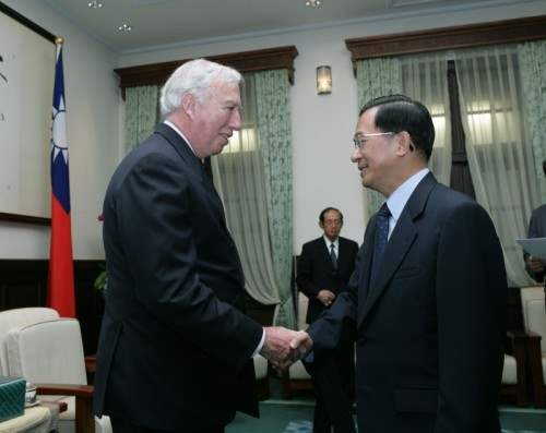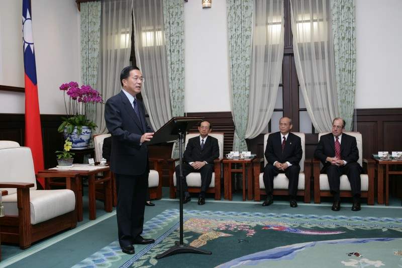 美國馬里蘭大學參加「亞洲領袖論壇」訪賓一行,上午由校長莫特(Dr. C.D. Mote)博士帶領、馬里蘭大學台灣校友會會長林蔚山陪同,前來總統府晉見總統,總統府副秘書長劉世芳也在座。