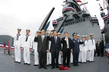 國家安全是超越個人與政黨的利益,而軍購案的通過也無關乎是誰的功勞。「基隆級軍艦」的採購剛提出的時候,朝野政黨對武器的效能、取得的時程與金額都有不同的意見,但經過理性與專業的討論,大家以國家安全為優先而予以支持,才有今天的成軍典禮,這不是任何個人或政黨的功勞,而是台灣二千三百萬人民大家共同的功勞與成就。