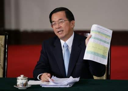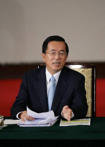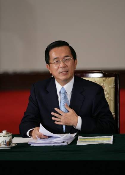 答:剛才我已經講的很清楚,我相信歷史一定會還給我公道,我也相信司法也一定會還我清白,但是我們必須要尊重司法的審判,如果司法審判一審判決貪污有罪,如果我太太被判決貪污有罪,當然就是按照檢察官的說法,因為阿扁與太太一樣,我也逃避不了。所以只要貪污在司法一審判決有罪,也不必等到三審定讞,我願意提前下台,我已經講得非常清楚,所以縱使蘇院長在立法院說必須要三審定讞,不必!