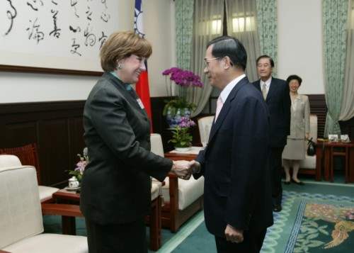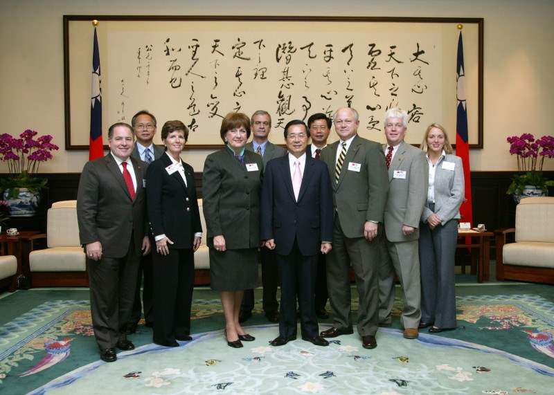 美國路易斯安那州州長布蘭可、Entergy公司總裁康利(Renae Conley)、路州經濟發展廳廳長奧利維(Michael Olivier)、助理廳長皮爾森(Don Pierson)、經濟官恰普曼(Brian Chapman)等,上午由外交部次長張小月陪同,前來總統府晉見總統。總統府秘書長陳唐山也在座。