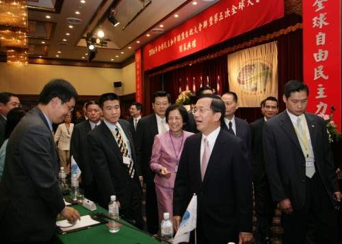 陳總統水扁先生今天上午出席「全僑民主和平聯盟第五次全球大會」,除對海外僑社成功催生「全僑民主和平聯盟」,表達欣喜之意,也對僑胞長年堅定支持國家、成為政府最堅實的後盾與分身,並向國際社會傳達台灣的民主自由成就,申致誠摯的感動及謝忱。