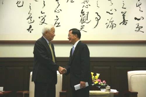 我國參加亞太經濟合作會議領袖會議代表團包括:領袖代表台積電董事長張忠謀、行政院經建會主委胡勝正、國安會副秘書長裘兆琳、行政院新聞局副局長易榮宗,下午由外交部次長楊子葆陪同,前來總統府晉見總統,總統府秘書長陳唐山也在座。