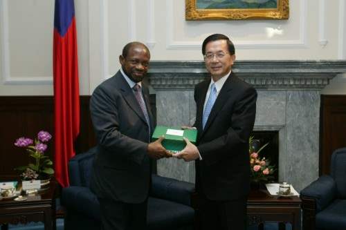 陳總統水扁先生今天上午接見聖克里斯多福總理道格拉斯(Denzil Douglas),代表政府及2,300萬人民,對訪賓再次率團訪問台灣,表達竭誠的歡迎之意。