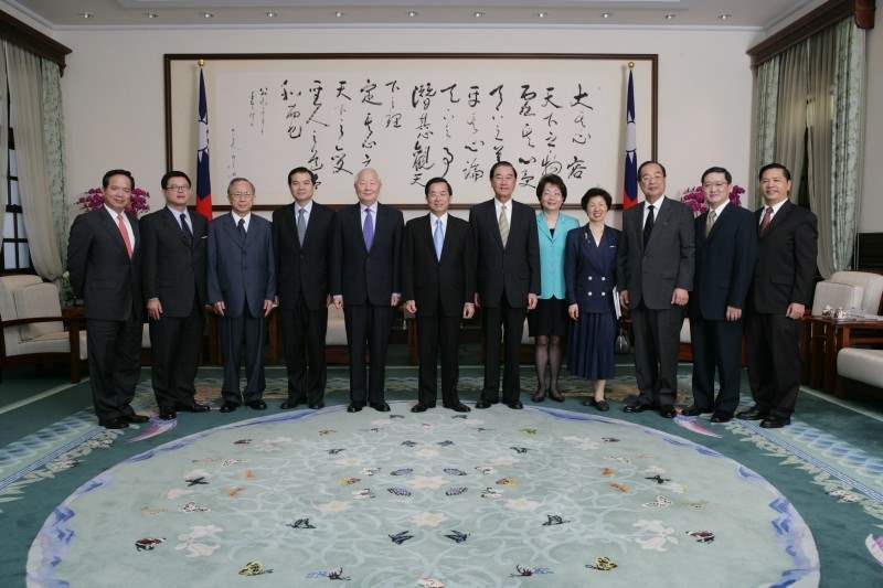 我國參加APEC領袖代表團,上午由領袖代表台積電董事長張忠謀率領,前來總統府晉見總統,總統府秘書長陳唐山也在座。