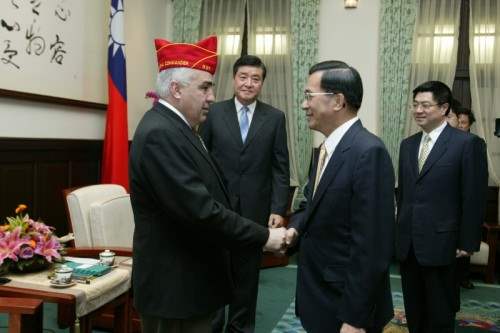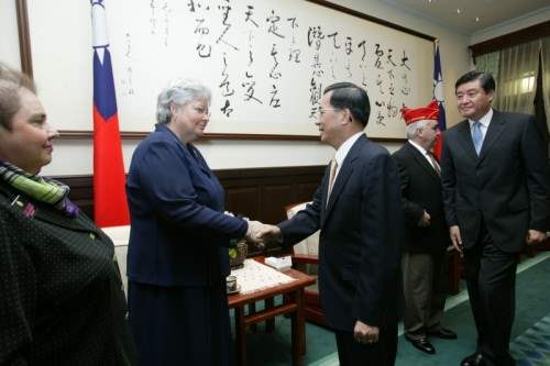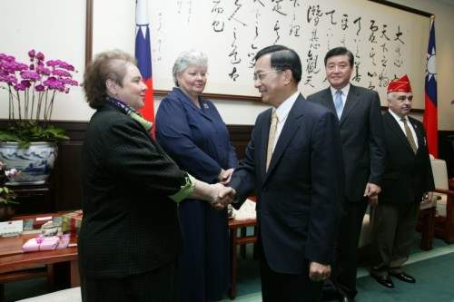 美國退伍軍人協會總會長保羅莫潤、婦女會總會長克蘿寧(Jo Ann Cronin)女士與美國海外作戰退伍軍人協會婦女會總會長米德爾女士(Linda Meader),下午由行政院退除役官兵輔導委會員主任委員高華柱陪同,前來總統府晉見總統,總統府副秘書長卓榮泰也在座。