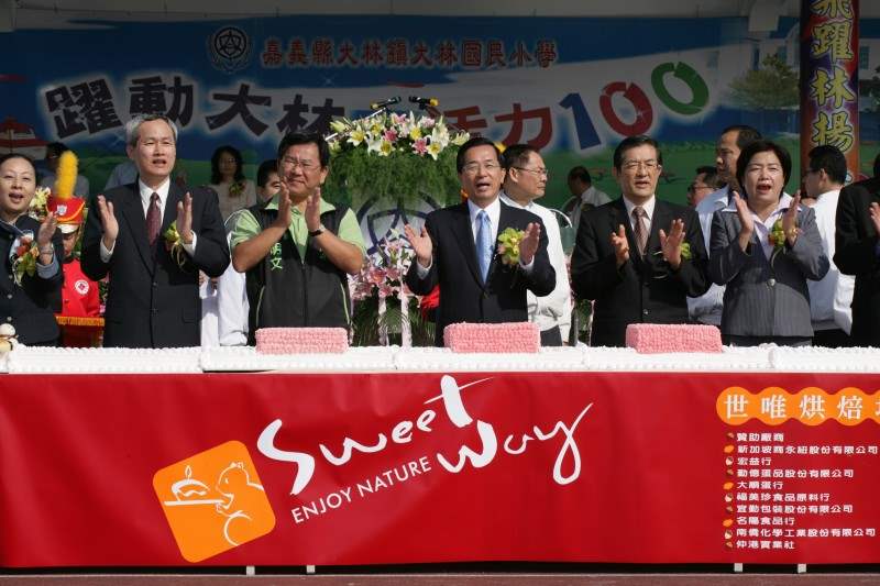 總統首先抵達嘉義縣大林國小,受到在場師生、民眾的熱烈歡迎。在歡樂的生日快樂歌聲中,為該校一百週年校慶「百米蛋糕慶百歲」活動切蛋糕慶生,並參加該校百週年紀念建物「一步一腳印」揭幕儀式,而為了感謝總統的蒞臨,大林國小也由該校傑出校友--法務部長施茂林代表致贈交趾陶吉祥物予總統。隨後,總統並為刻正在該校舉行的椪柑節暨蘭花展開幕活動剪綵。