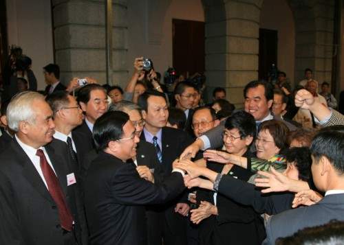 關於轉型正義或併發症的問題,總統指出,自從政黨輪替以來,原本有非常好的機會,一一對過去威權體制所遺留下來的錯誤、不合理的制度進行通盤的檢討與改正。但非常遺憾的,只因為政黨競爭的關係,許多問題被泛政治化、泛意識形態化,阻力重重。但是,該做的事情,還是要做,追求歷史真相、相關機密檔案的公開與出版、處理政黨不當取得黨產等等,在他未來一年半的任期之內,會繼續推動落實,並請海外的鄉親繼續給予最大的支持、鼓勵、批評和指教。