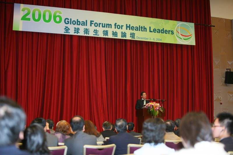 今天非常榮幸能夠應邀參加「2006年全球衛生領袖論壇」,和國內外衛生界的官員及學者專家們,還有「世界醫師會」等國際組織的重要領袖們齊聚一堂,針對「推動全球衛生之永續」等相關的議題,凝聚智慧,相互交流。在此本人謹代表台灣政府及全體國人同胞,向各位遠道而來的外國嘉賓致上最崇高的敬意和歡迎之意。