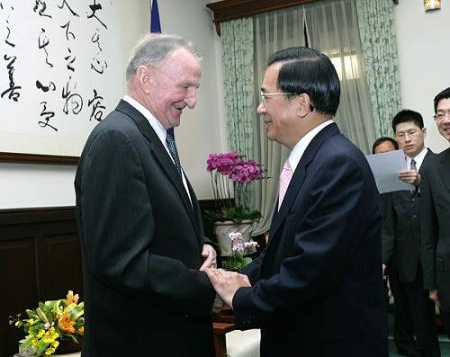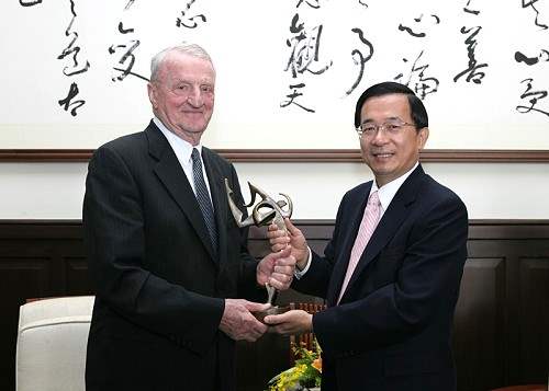國際大學運動總會會長基林一行,上午由教育部長杜正勝陪同,前來總統府晉見總統,總統府副秘書長卓榮泰也在座。