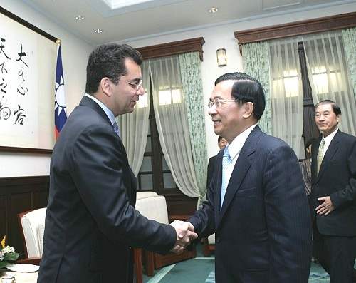 宏都拉斯副總統桑多士上午由外交部次長楊子葆及宏國駐台大使畢耶拉(Marlene Villela De Talbott )陪同,前來總統府晉見總統,總統府秘書長陳唐山也在座。