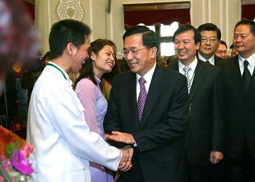今天非常高興能夠和各位入籍配偶—「咱台灣的媳婦」和「咱台灣的女婿」在總統府見面,剛才聽到大家非常感人的朗誦表演,令人非常敬佩。記得兩年前,本人也曾經邀請外籍配偶和他們的孩子來總統府「奉茶」;今年八月,我又特別拜訪了「屏東縣海口人社區經營協會」,關心此協會如何協助、輔導外籍配偶融入當地的生活,當地的外籍配偶也告訴我許多他們在台灣遭遇到的辛酸與困難。真的,就像剛剛各位入籍配偶所朗誦的:「希望大家能夠疼惜我們,鼓勵我們」,所以,本人也要再次鄭重的敦請全體國人同胞一起來疼惜、來鼓勵所有的入籍配偶。