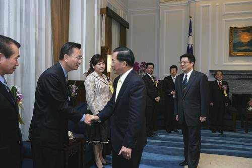陳總統水扁先生今天下午接見獲得第八屆國家建築金質獎得獎廠商代表,除了對得獎者致力於提昇台灣營建的優質競爭力,獲得社會大眾高度肯定,表達最誠摯的嘉勉外,也期勉全體營建業界及國人一起追求更高建築境界,讓台灣建築環境一天比一天好,讓台灣更美。