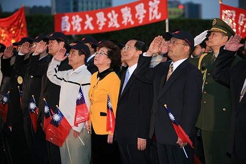 在參加中樞開國紀念典禮暨元旦團拜之前,總統暨副總統也參加在總統府前廣場舉行的民國96年元旦升旗典禮。