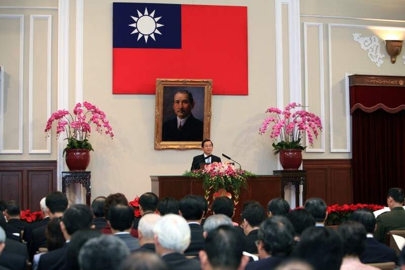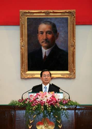 陳總統水扁先生今天在總統府大禮堂主持中華民國96年開國紀念典禮暨元旦團拜。