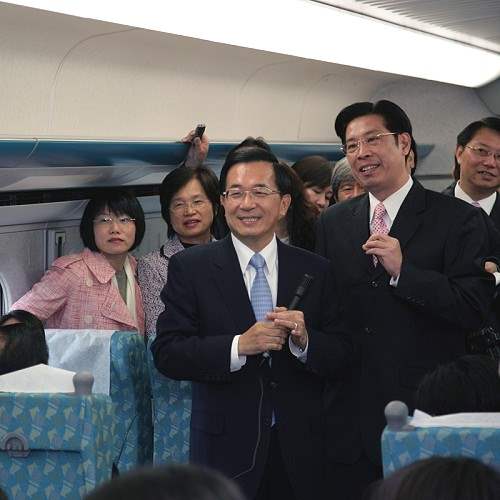 今天2007年的第一天,新年伊始,大家都非常的高興,本人也不例外,特別今天能夠親自搭乘台灣高鐵列車,相信這是等了六年多的事情,今天我們看到了、而且我們也做到了,沒有人比本人更高興。也許這樣的比喻並不是很恰當,但是我還是覺得我可以這樣講:孩子不是我的,但是我們還是平安地把他生下來。就如同剛才殷董事長及蔡部長所說,整個台灣高鐵建設是在2000年的三月一日正式動工,實際的興建大概都是在本人擔任總統6年多的期間,雖然整個台灣高鐵建設不是在本人擔任總統任內所規劃、設計,或發包、開始動工興建,但是實際的施作都是在本人任內。所以,雖然我們遇到很多困難,而且受到很多的污衊、扭曲和中傷,但是我們還是非常有信心地一路走過來。
