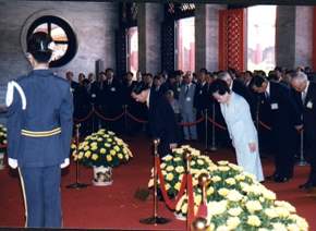 上午十時正,在崇戎樂聲中,總統由總統府秘書長陳師孟陪同抵達忠烈祠。
