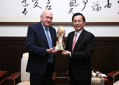 總統表示,戴克拉克前總統去年6月應「施明德講座」邀請來台,當時他與戴克拉克前總統有機會共進午餐,相談甚歡,尤其戴克拉克前總統訪台6次,其中3次是在他擔任總統任內,令他非常喜悅。