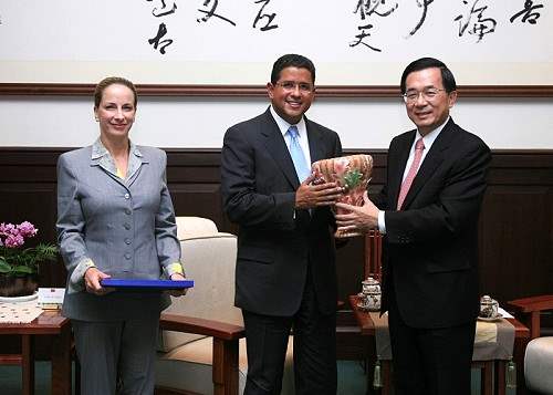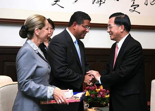 佛洛瑞斯前總統伉儷等一行,下午由外交部次長侯清山陪同,前來總統府晉見總統,總統府秘書長陳唐山也在座。