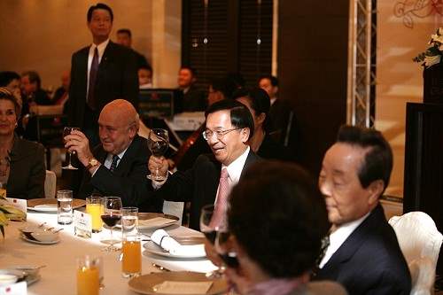 本人得此機會能設宴款待諸位貴賓,深感榮幸。首先恭喜陳水扁總統閣下,今天的全球新興民主論壇圓滿順利成功。此次很榮幸能邀請來自四大洲、五國的卸任元首齊聚一堂。對全球熱愛自由的人士而言,各位是最能鼓舞人心的典範。今晚還邀請到來自25國家的非政府組織代表共襄盛舉,日前甫結束的「世界民主社群亞洲區會議」。藉此機會,政治領袖與民主鬥士不分地域、種族、宗教齊聚一堂。由於我們對人權、民主與和平的奉獻讓我們相會,而透過我們的並肩努力,這些共同理念方得以落實。